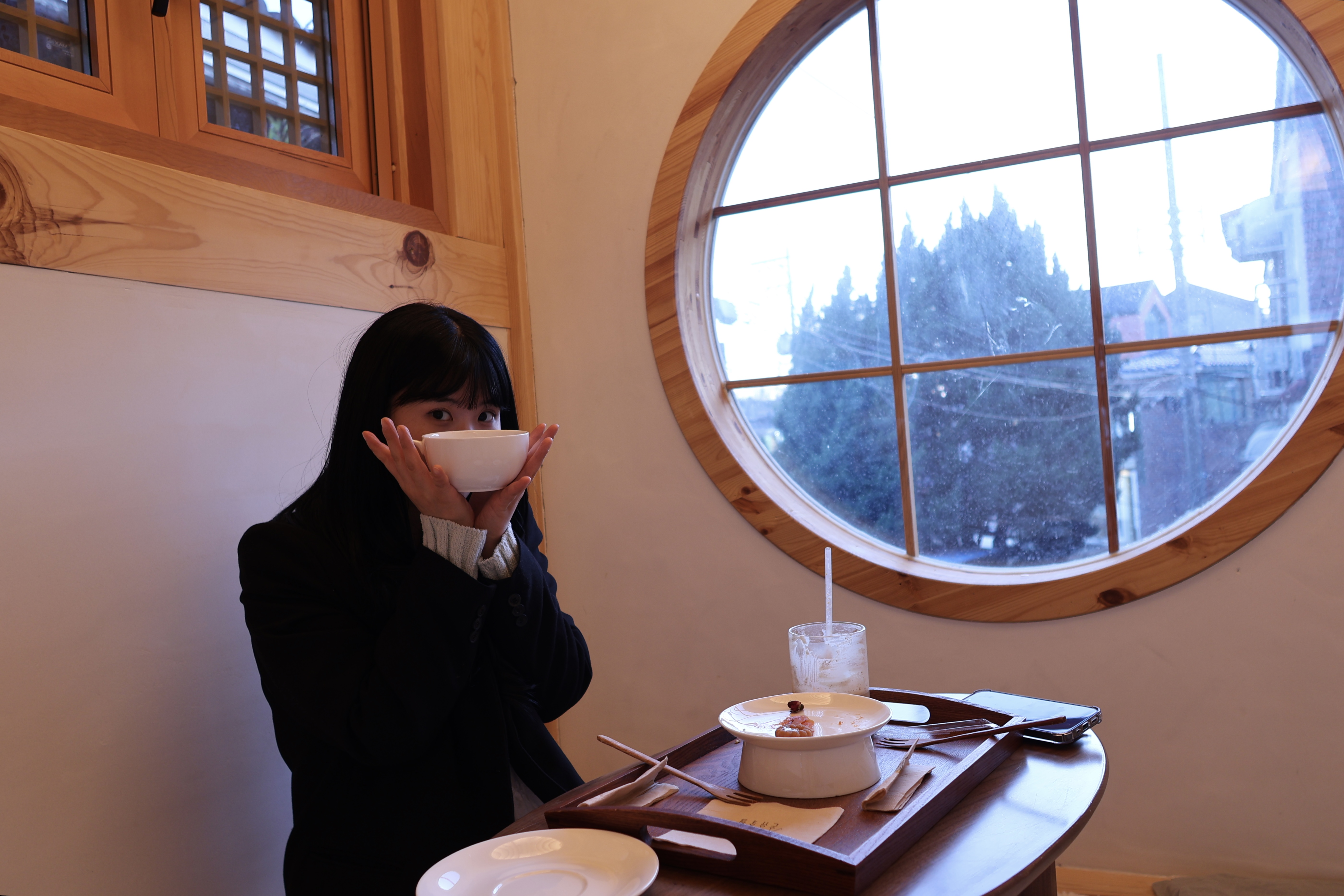 온유여월은 고심 끝에 고른 한옥카페다! 호두치즈곶감말이는 가성비가 너무 안 좋았지만, 온유라떼와 여월차는 맛있었다. 나는 온유라떼가 엄청 맛있는 건 줄 알았는데, 그냥 바나나라테 맛이라고 한다..! 여월차는 따뜻한 수정과 맛이다 ㅋㅋㅋ