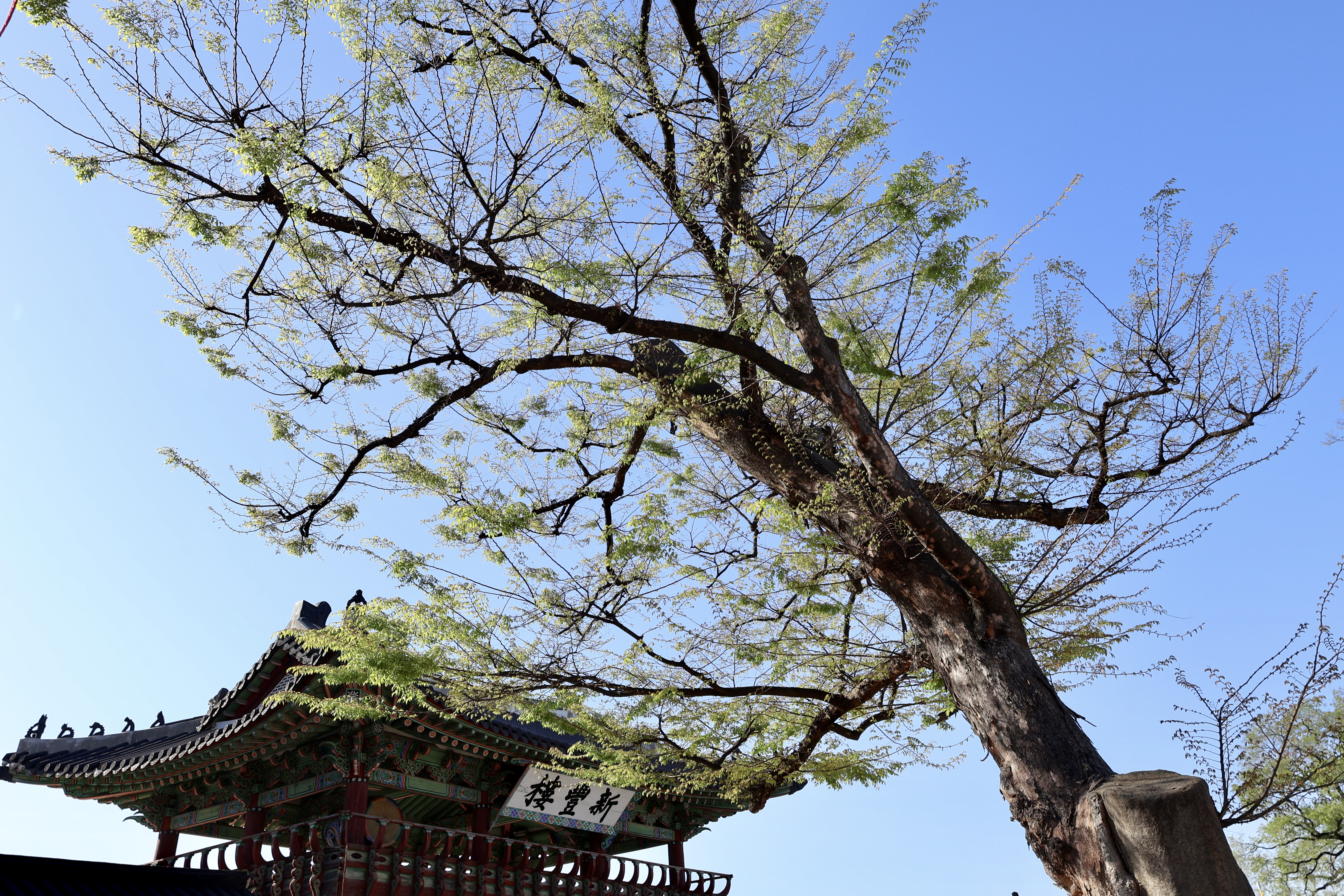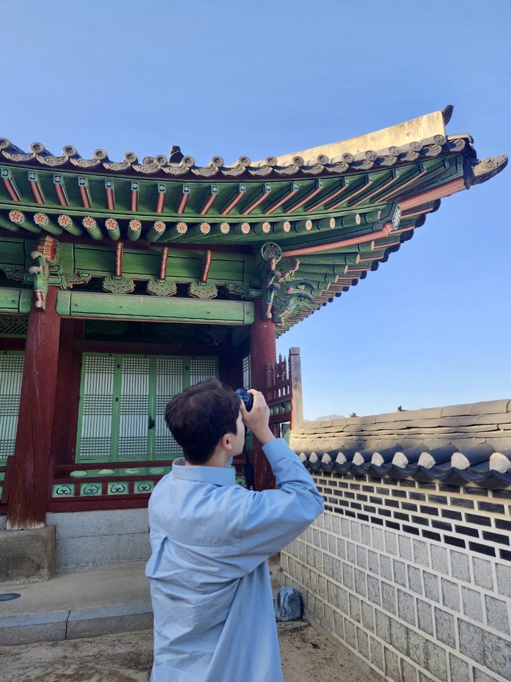 입구에 들어서면 우측에 집사청이 보이는데, 집사청을 배경으로 보이는 돌담과 나무가 내 마음에 쏙 들었다. 들어가는 길에는 기대했던 것만큼 사진에 안 담겼는데, 나오는 길에 찍은 사진에는 잘 담겨서 기분이 좋았다!