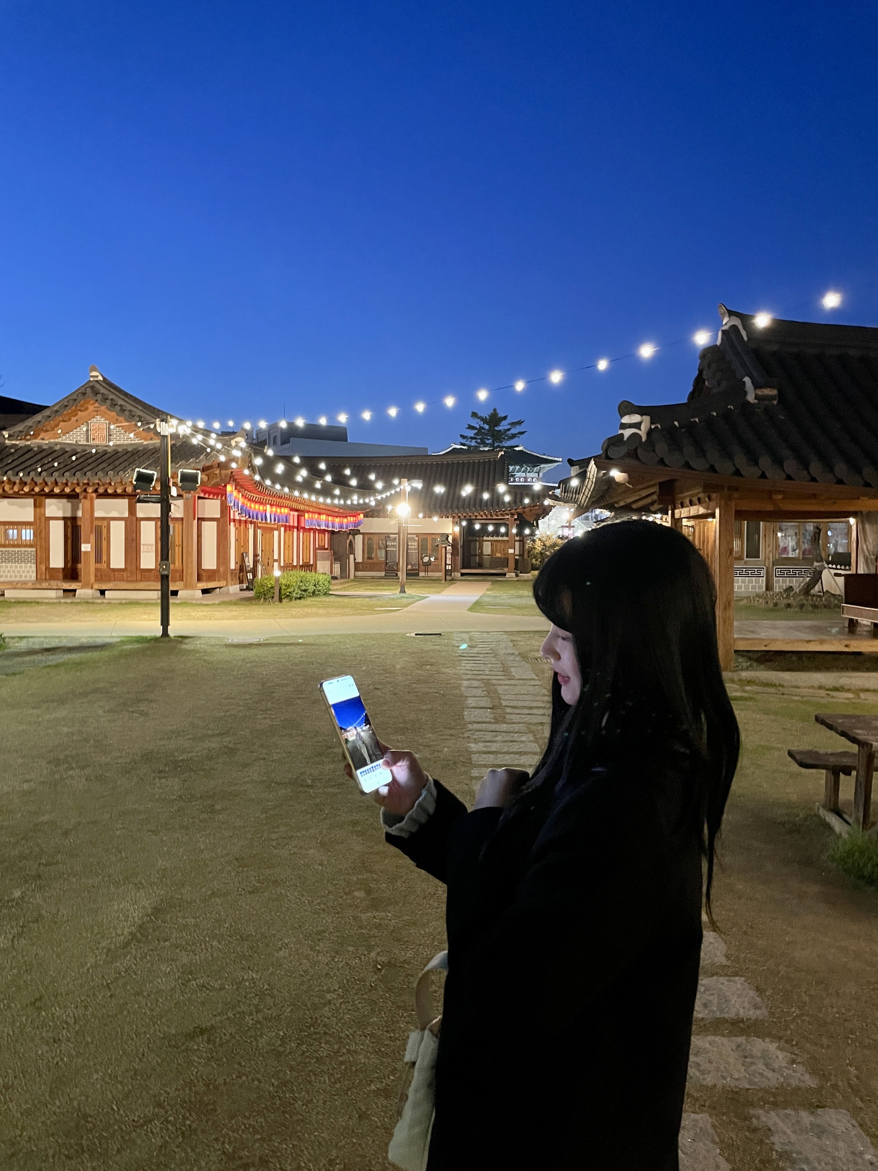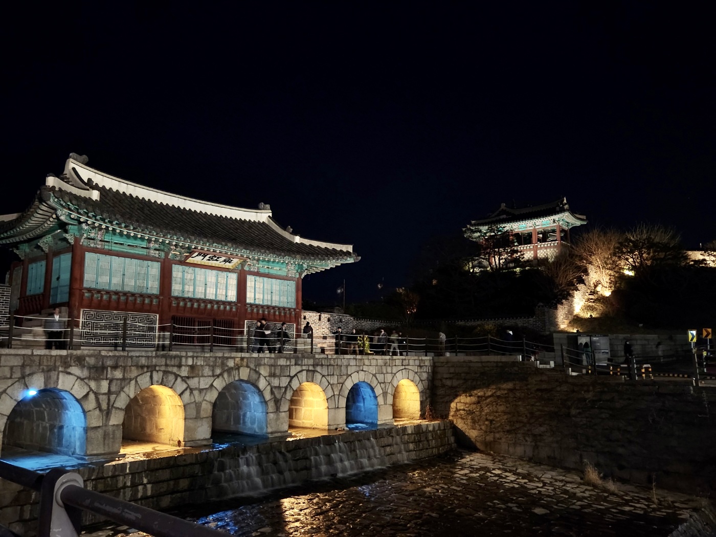 카페에서 나와 주차장으로 가는 길에 우연히 이쁜 곳을 발견했다! 여행이 끝나고 집에 와서 찾아보니 수원전통문화관이었는데, 저녁에 켜주는 조명이 너무 이뻐서 잠깐 들러 사진을 찍었다.